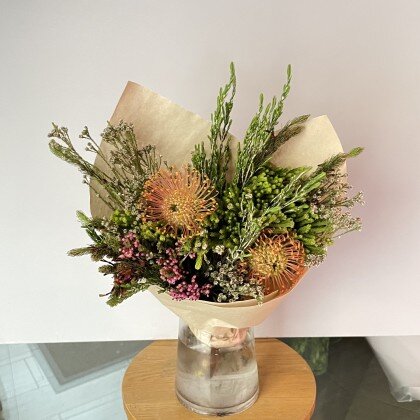 В составе: французские розы/ диантус кустовой/ лизиантус.