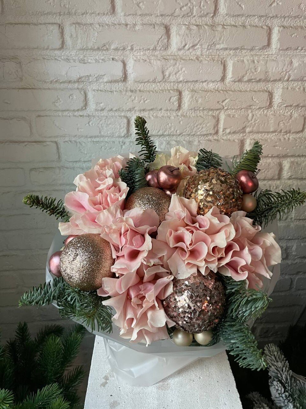 Состав: Нобилис 1шт Роза французская 7шт Новогодний декор