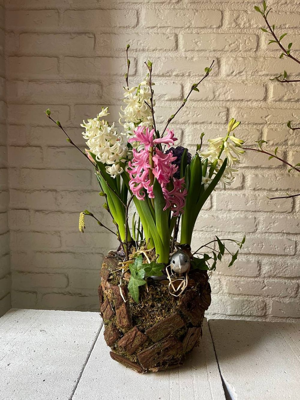 Кашпо лесное с гиацинтами